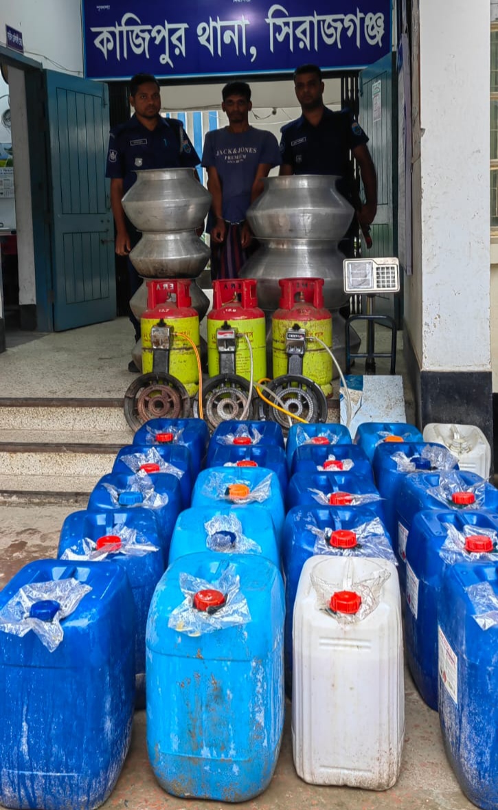 অন্জনা স্টাফ রিপোর্টার- সিরাজগঞ্জোর কাজিপুর থানা পুলিশ মদ তৈরির সরঞ্জামাদীসহ তিনশ আট লিটার মদ উদ্ধার করেছে। এসময় এর মূল হোতা মাসুদ রানা(৩৪)কে গ্রেপ্তার করেছে। তিনি উপজেলার চালিতাডাঙ্গা ইউনিয়নের লক্ষীপুর উত্তরপাড়া মৃত শাহ আলী সরকারের পুত্র। এ বিষয়ে কাজিপুর থানায় একটি নিয়মিত মামলা দায়ের হয়েছে।