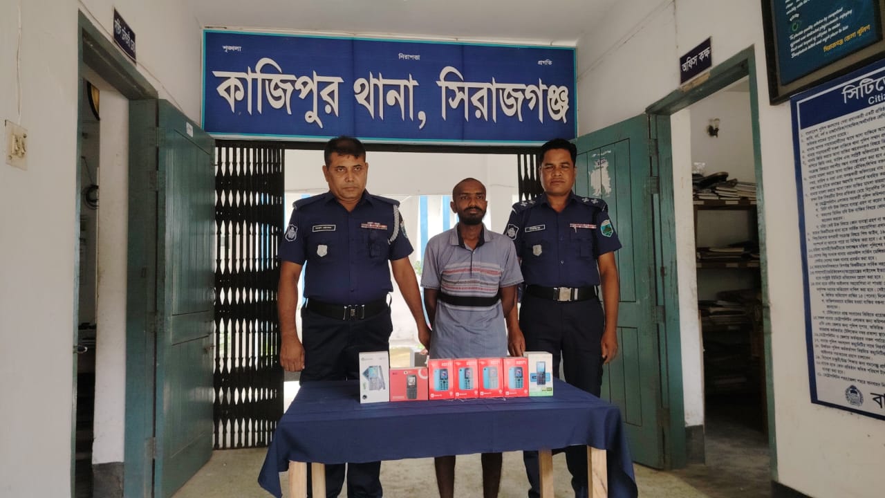 সিরাজগঞ্জের কাজিপুর থানা পুলিশ ৭ পিচ মোবাইল ফোনসেটসহ রাজিবুল হাসান ওরফে রাজিব(২১) কে গ্রেপ্তার করেছে। সে উপজেলার নাটুয়ারপাড়া ইউনিয়নের ঘোড়াগাছা গ্রামের আব্দুস সালামের পুত্র। গত রবিবার(২৯ জুন) রাতে নাটুয়ারপাড়া এলাকায় অভিযান চালিয়ে তাকে গ্রেপ্তার করেছে থানা পুলিশ। গ্রেপ্তারকৃত রাজিব গত ২৬ এপ্রিল উপজেলার মেঘাই পুরাতন বাজারে সংঘঠিত মোবাইল ফোন চুরির মূল হোতা। ওই চুরির ঘটনায় গত ৩০ এপ্রিল কাজিপুর থানায় একটি মামলা হয়েছিলো।