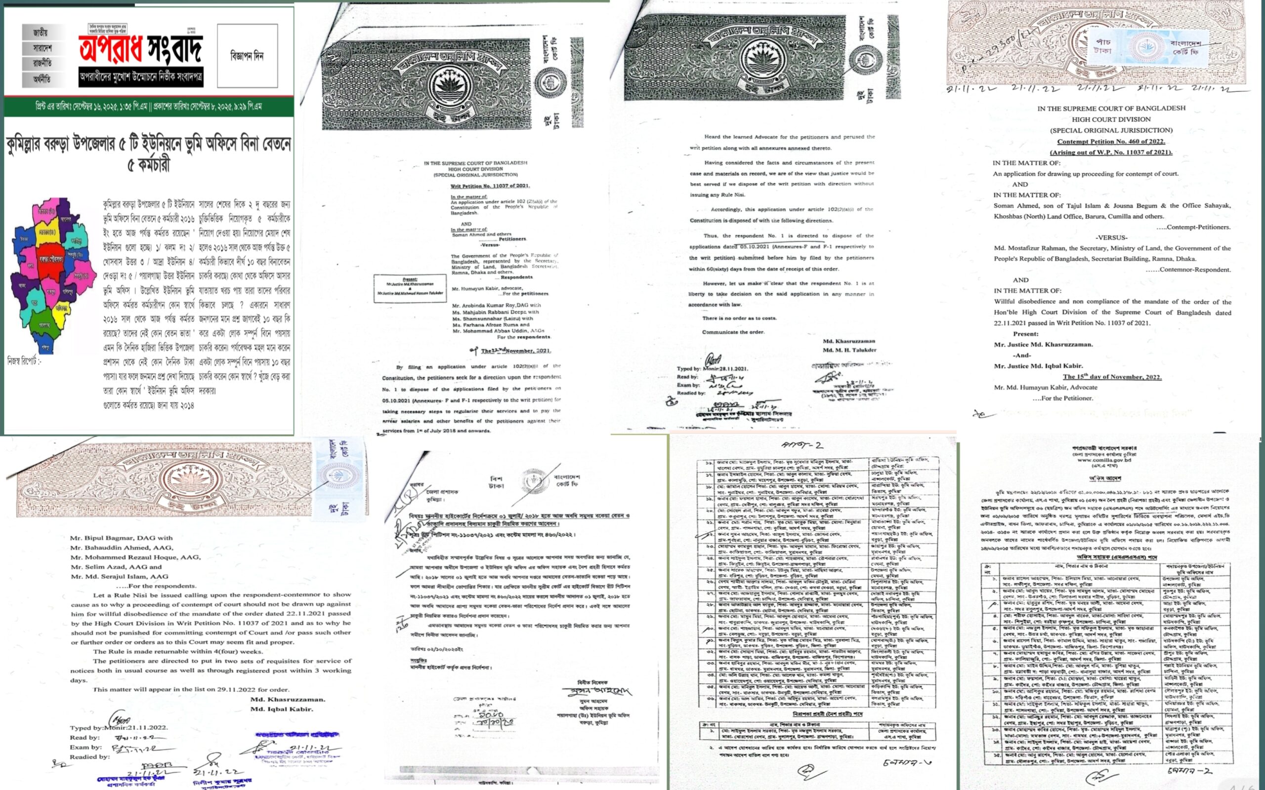 কুমিল্লার বরুড়া উপজেলার ৫টি ইউনিয়নের ভুমি অফিসে কর্মরত কর্মচারীদের বিষয়ে সম্প্রতি একটি সংবাদ প্রকাশিত হয়েছে, যেখানে বলা হয়েছে তারা ২০১৬ সাল থেকে বিনা বেতনে কাজ করে আসছেন।এ প্রসংগে ভুমি অফিসে কর্মরত এক কর্মচারী জানান ' আমাদেরকে ১৪ সালে জেলা প্রসাশক মহোদয় নিয়োগ দিয়েছেন । কিন্তু আমরা ১৬ সাল থেকে কোন বেতন ভাতা না পওয়ায় আমরা আদালতে মামলা দায়ের করেছি৷ মামলা চলমান অবস্থায় রয়েছে৷ আমাদের পক্ষে রায় হয়েছে কিন্তুু মামলার রায় বাস্তবায়ন না করায় আমরা আরও একটি কন্টেন্ট মামলা দায়ের করেছি৷ সে মামলাও চলমান রয়েছে৷ তাইৃ আমরা মামলা চুড়ান্ত রায় না হওয়ায় আমরা স্ব স্ব স্হানে কর্মরত রয়েছি৷ আমাদের ন্যায্য পারিশ্রমিক পাওয়ার আসায়৷ আমরা সারাদেশ কর্মরত সকল শ্রমিকগন সংশ্লিষ্ট কতৃপক্ষের নিকট আকুল আবেদন করছি আমরা নিয়মিত আমাদের দায়িত্ব পালন করে আসছি ' অতচ আমারা বেতন ভাতা পাচ্ছিনা ৷ আমারা বেতন না পাওয়ায় পরিবার পরিজন নিয়ে মানবেতর জীবনযাপন করছি৷ এবং আমাদের প্রায় সকলের চাকরির বয়স শেষ৷ তাই আমারা সরকারের নিকট দাবি জানাচ্ছি আমাদের পরিবার পরিজন নিয়ে বাঁচতে দিন৷ পরিশেষে সকল সাংবাদিক ভাইদের নিকট অনুরোধ করছি দয়া৷ আমাদের সবকিছু জেনে আমাদের পাশে দাড়ান৷ পরিশেষে সকরকারের নিকট আমাদের আকুল আবেদন ' আমাদের সমস্যার দিকে নজর দিন ' আমাদের কে বাচাঁন৷ তাদের নিয়োগ সংক্রান্ত ও মামলার কাগজপত্র সংযুক্ত করা হলো।