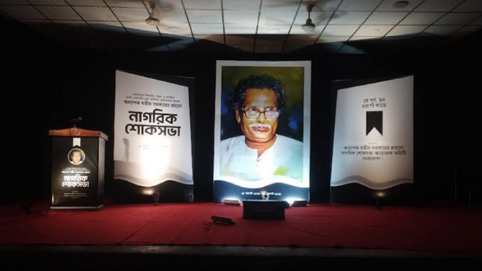 বৃহস্পতিবার সন্ধ্যায় শহরের মোক্তারপাড়া পাবলিক হল মিলনায়তনে এই নাগরিক শোকসভার আয়োজন করে অধ্যাপক যতীনের প্রয়াণে নাগরিক শোকসভা আয়োজক কমিটি।