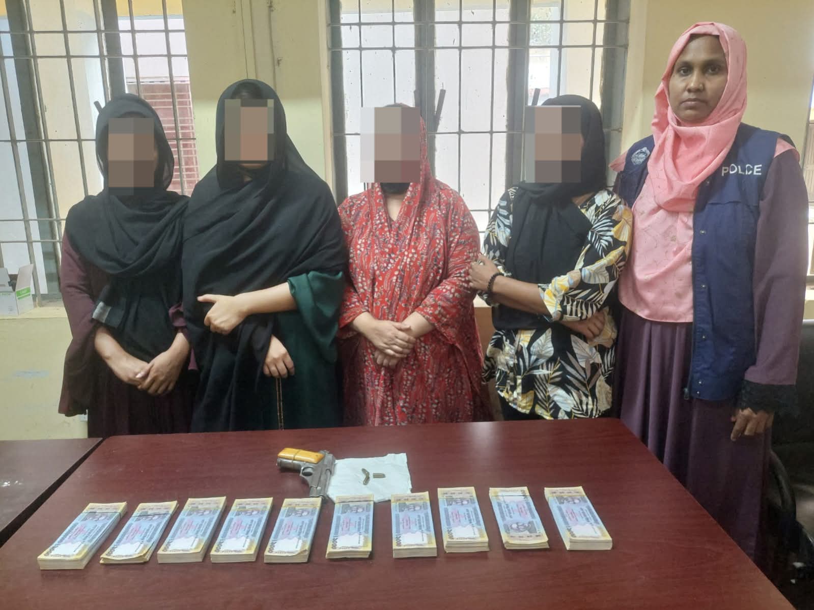 গ্রেফতারকৃতরা হলেন— ১। শেফালী বেগম (৪০) ২। খাদিজা আক্তার (২০) ৩। তাসলিমা আক্তার (১৯) ৪। লাকি বেগম (২৯)