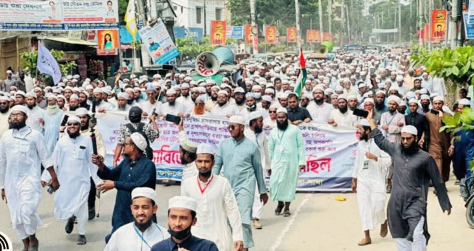 রবিবার (৫ অক্টোবর) শহরের বিভিন্ন মাদ্রাসার শিক্ষার্থী ও হেফাজত নেতাকর্মীরা এ বিক্ষোভ মিছিলে অংশ নেন। মিছিলটি শহরের তিতাসপাড় এলাকা থেকে শুরু হয়ে বিভিন্ন সড়ক প্রদক্ষিণ করে প্রেস ক্লাবের সামনে সমাবেশে মিলিত হয়।