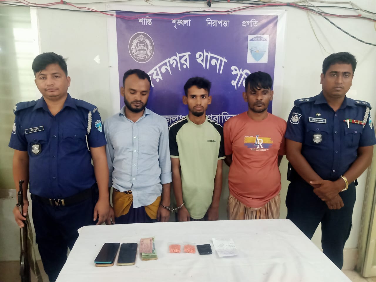৮ অক্টোবর দিবাগত রাত অনুমান ১২টা ৫০ মিনিটে বিজয়নগর উপজেলার চান্দুরা ইউনিয়নের জালালপুর গ্রামে এক যৌথ অভিযান চালিয়ে তিন কুখ্যাত মাদক কারবারি মাসুক মিয়া, তার ভাতিজা আক্তার হোসেন এবং কামাল হোসেনকে ইয়াবা, নগদ টাকা ও মোবাইল ফোনসহ গ্রেফতার করেছে সেনাবাহিনী ও বিজয়নগর থানা পুলিশ। এই অভিযানে এলাকায় দীর্ঘদিন ধরে সক্রিয় একটি মাদক চক্রের মূলে আঘাত হানা সম্ভব হয়েছে বলে মনে করছেন স্থানীয়রা।