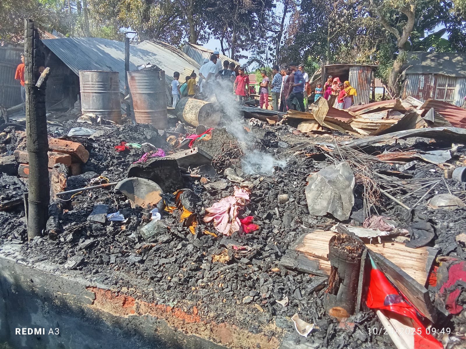 ক্ষতিগ্রস্ত পরিবারের সদস্যদের অভিযোগ— দীর্ঘদিনের রাস্তা নিয়ে বিরোধের জের ধরেই প্রতিপক্ষরা আগুন ধরিয়ে দিয়েছে।