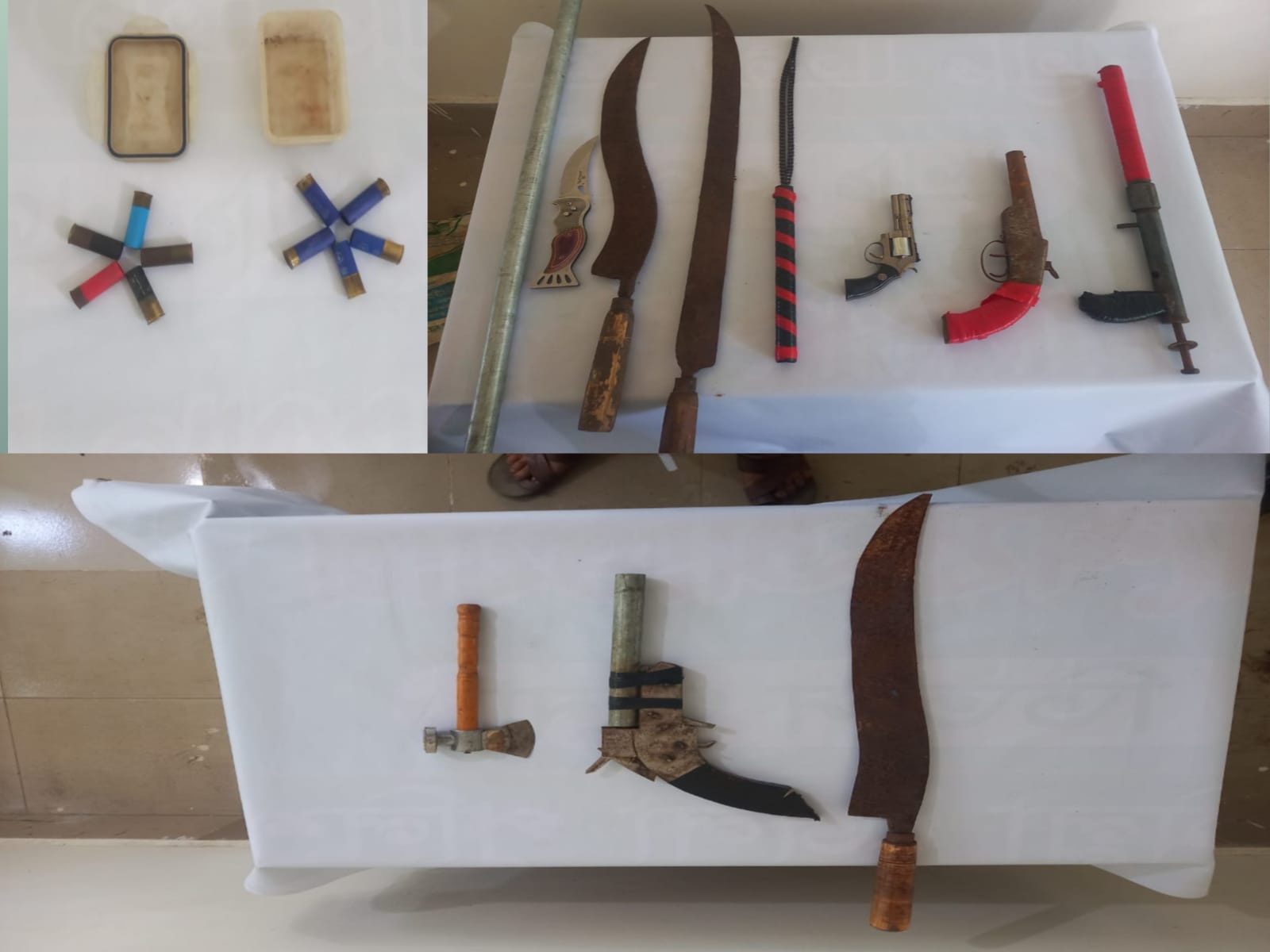 অভিযানে পুলিশ ১টি বিদেশী রিভলভার ও ৬ রাউন্ড গুলি, ১টি এলজি বন্দুক, ২টি পাইপ গান, ১০টি সীসা কার্তুজ এবং ৩টি ধারালো অস্ত্র উদ্ধার করে। এসময় ঘটনাস্থল থেকে তিনজনকে গ্রেফতার করা হয়।