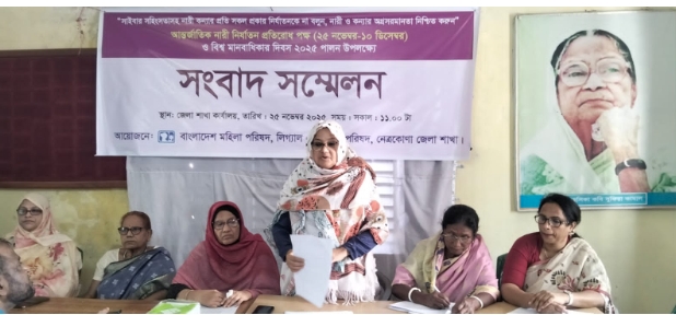 ২৫ নভেম্বর মঙ্গলবার সকাল ১১টায় অজহর রোডস্থ জেলা শাখা কার্যালয়ে বাংলাদেশ মহিলা পরিষদ, লিগ্যাল এইড উপ পরিষদ, নেত্রকোণা জেলা শাখা এই সংবাদ সম্মেলনের আয়োজন করে।