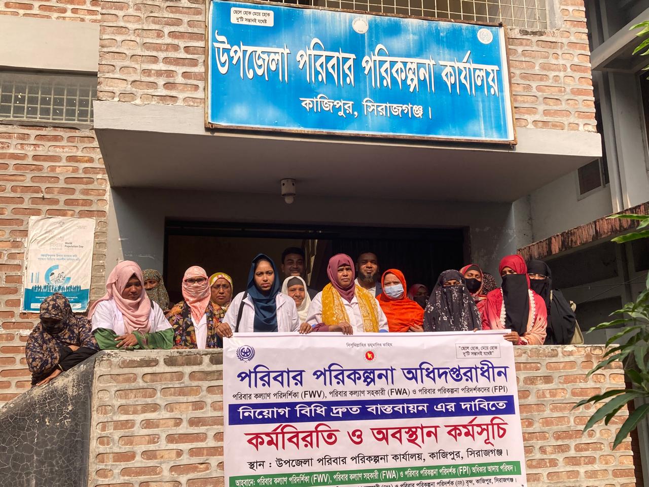 সিরাজগন্জের কাজীপুরে পরিবার পরিকল্পপনা পরিদর্শক ও সহকারিদের কর্মবিরতি ও অবস্থান কর্মসূচ পালন