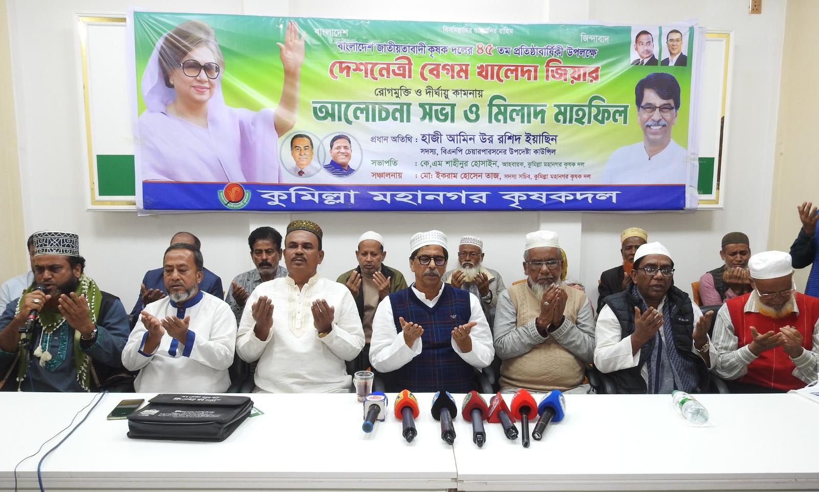 অনুষ্ঠানে সাবেক প্রধানমন্ত্রী ও বিএনপি চেয়ারপার্সন দেশনেত্রী বেগম খালেদা জিয়া-এর দ্রুত সুস্থতা ও রোগমুক্তি কামনায় বিশেষ দোয়া করা হয়। এতে কৃষকদলসহ বিএনপির অঙ্গ ও সহযোগী সংগঠনের নেতাকর্মীরা অংশ নেন।