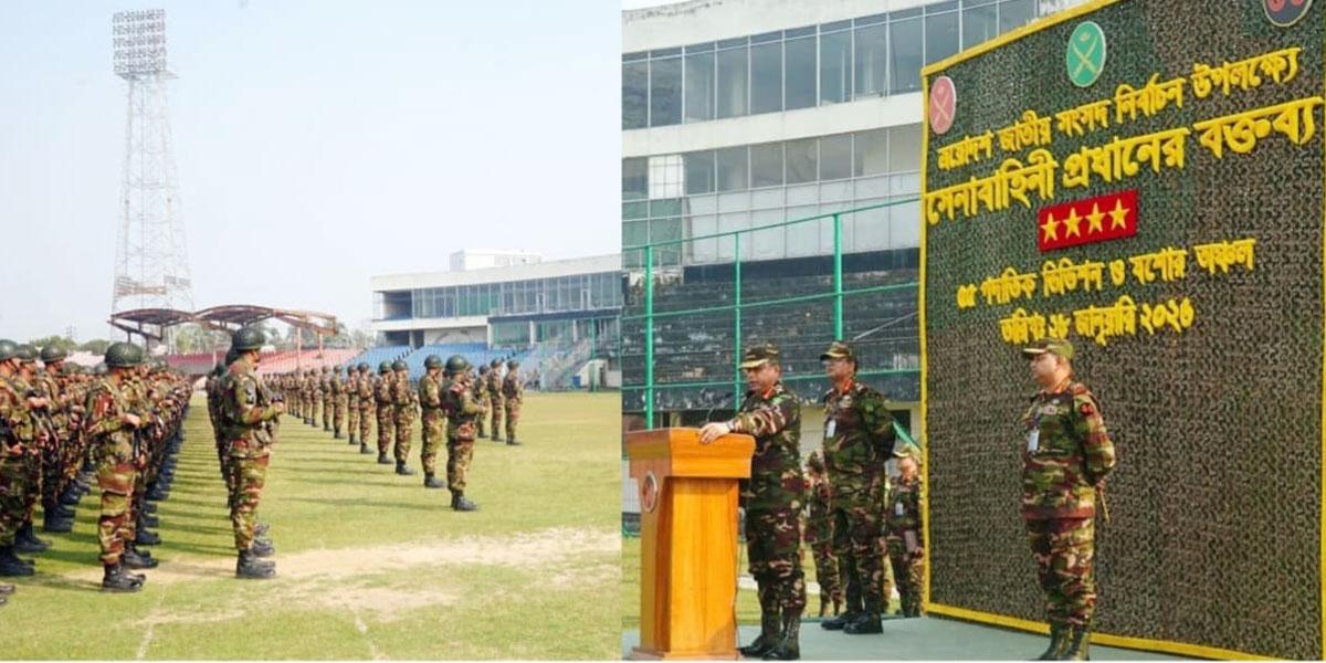 আন্তঃবাহিনী জনসংযোগ পরিদপ্তর (আইএসপিআর) এক সংবাদ বিজ্ঞপ্তিতে জানিয়েছে, সেনাপ্রধান আসন্ন ত্রয়োদশ জাতীয় সংসদ নির্বাচন ও গণভোট-২০২৬ উপলক্ষ্যে সার্বিক আইনশৃঙ্খলা পরিস্থিতি মূল্যায়ন এবং 'ইন এইড টু দ্য সিভিল পাওয়ার'র আওতায় মোতায়েনরত সেনাসদস্যদের কার্যক্রম সরেজমিনে পটুয়াখালী ও খুলনা পরিদর্শন করেন। পরিদর্শনকালে সেনাপ্রধান সেনাসদস্যদের প্রয়োজনীয় দিকনির্দেশনা দেন। পাশাপাশি তিনি অসামরিক প্রশাসনের সঙ্গে মতবিনিময় করেন।