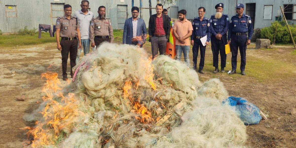 এ জাল আগুনে পুড়িয়ে নষ্ট করার সময় উপস্থিত ছিলেন সিনিয়র জুডিসিয়াল ম্যাজিস্ট্রেট পলাশ বদ্ধন, আবদুল মান্নান এবং নৌ পুলিশের অন্যান্য সদস্যরা।