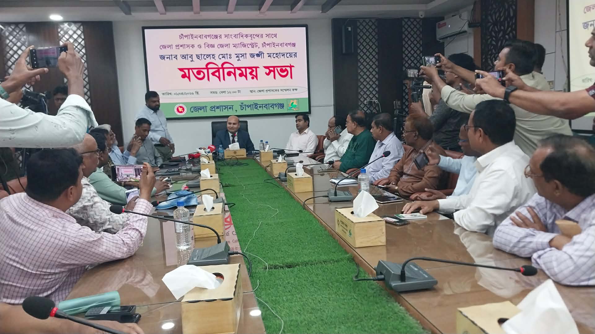চাঁপাইনবাবগঞ্জের জেলা প্রশাসক ও বিজ্ঞ জেলা ম্যাজিস্ট্রেট আবু ছালেহ মোঃ মুসা জঙ্গী সাংবাদিকদের সঙ্গে এক মতবিনিময় সভা করেছেন। বুধবার (১ এপ্রিল) দুপুর ১২টায় জেলা প্রশাসনের আয়োজনে জেলা প্রশাসকের সম্মেলন কক্ষে এ সভা অনুষ্ঠিত হয়।