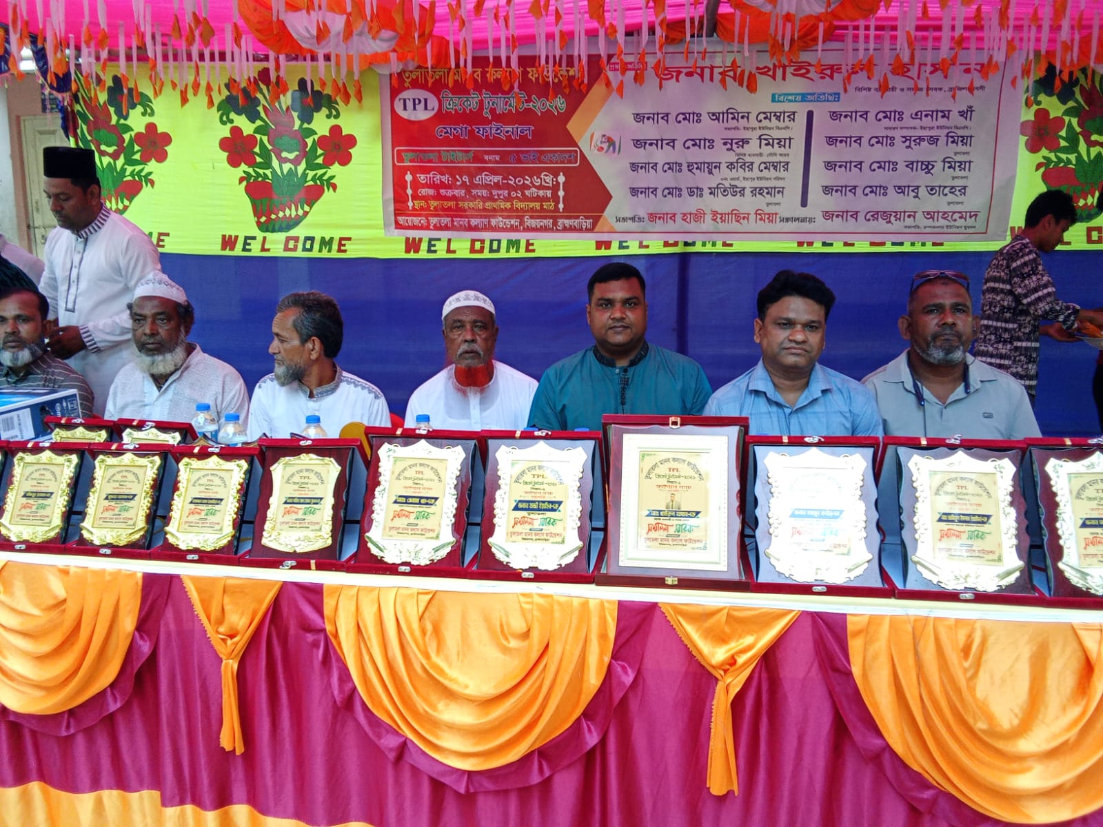 ব্রাহ্মণবাড়িয়ার বিজয়নগর উপজেলার ইছাপুরা ইউনিয়নে উৎসবমুখর পরিবেশে অনুষ্ঠিত হয়ে গেল তুলাতলা মানব কল্যাণ ফাউন্ডেশন (T P L) ক্রিকেট টুর্নামেন্ট ২০২৬-এর মেগা ফাইনাল। শুক্রবার (১৭ এপ্রিল) বিকেলে তুলাতলা সরকারি প্রাথমিক বিদ্যালয় মাঠে অনুষ্ঠিত এই হাইভোল্টেজ ম্যাচে ৫ ভাই একাদশকে পরাজিত করে চ্যাম্পিয়ন হওয়ার গৌরব অর্জন করেছে তুলাতলা টাইটার্স। তুলাতলা মানব কল্যাণ ফাউন্ডেশনের উদ্যোগে আয়োজিত এই টুর্নামেন্টের সমাপনী অনুষ্ঠানে সভাপতিত্ব করেন এলাকার বিশিষ্ট মুরব্বি হাজী ইয়াছিন মিয়া। অনুষ্ঠানে প্রধান অতিথি হিসেবে উপস্থিত থেকে বিজয়ীদের মাঝে পুরস্কার বিতরণ করেন বিশিষ্ট ব্যবসায়ী, সমাজসেবক ও ব্রাজিল প্রবাসী খাইরুল হাসান। প্রধান অতিথির বক্তব্যে খাইরুল হাসান বলেন, "তরুণ সমাজকে মাদক ও অপকর্ম থেকে দূরে রাখতে খেলাধুলার কোনো বিকল্প নেই। তুলাতলা মানব কল্যাণ ফাউন্ডেশন যে আয়োজন করেছে তা প্রশংসার দাবি রাখে। ভবিষ্যতেও এমন সামাজিক ও ক্রীড়া মূলক কর্মকাণ্ডে আমার সহযোগিতা অব্যাহত থাকবে।" অনুষ্ঠানে বিশেষ অতিথি হিসেবে উপস্থিত ছিলেন সৌদি প্রবাসী নুরু মিয়া, ইছাপুরা ইউনিয়ন বিএনপির সাধারণ সম্পাদক এনাম খাঁ, হুমায়ুন কবির মেম্বার, সুরুজ মিয়া এবং বাচ্চু মিয়াসহ এলাকার গণ্যমান্য ব্যক্তিবর্গ। পুরো অনুষ্ঠানটি অত্যন্ত প্রাণবন্তভাবে সঞ্চালনা করেন রেজুয়ান আহমেদ। খেলা শেষে পুরস্কার বিতরণী পর্বে চ্যাম্পিয়ন দল তুলাতলা টাইটার্স-এর হাতে প্রথম পুরস্কার হিসেবে একটি ৩২ ইঞ্চি কালার টেলিভিশন তুলে দেন প্রধান অতিথি খাইরুল হাসান। রানার্সআপ দল ৫ ভাই একাদশকে দ্বিতীয় পুরস্কার হিসেবে একটি ২৪ ইঞ্চি কালার টেলিভিশন প্রদান করা হয়। এছাড়া টুর্নামেন্ট উপলক্ষ্যে সমাজসেবায় বিশেষ অবদানের স্বীকৃতিস্বরূপ এলাকার ২৫ জন বিশিষ্ট ব্যক্তিকে সম্মাননা স্মারক প্রদান করা হয়। টানটান উত্তেজনার এই ফাইনাল খেলাটি উপভোগ করতে মাঠের চারদিকে শত শত দর্শক উপস্থিত হয়ে আনন্দ উল্লাস করেন। তুলাতলা মানব কল্যাণ ফাউন্ডেশনের এই সুন্দর আয়োজনে এলাকাবাসী সন্তোষ প্রকাশ করেছেন।
