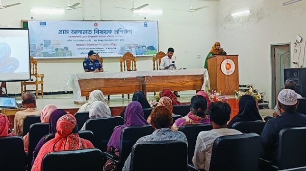 মোহাম্মদ এমরান হোসেন রিটন কুমিল্লা উত্তর জেলা প্রতিনিধি; গ্রামীণ পর্যায়ে প্রান্তিক ও পিছিয়ে পড়া জনগোষ্ঠীর ন্যায়বিচার প্রাপ্তি নিশ্চিত করতে মেঘনা উপজেলায় ইউপি সদস্যদের অংশগ্রহণে “গ্রাম আদালত বিষয়ক প্রশিক্ষণ কর্মশালা” সম্পন্ন