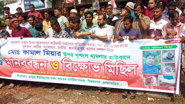আবদুল্লাহ আল হৃদয়ঃ- ব্রাহ্মণবাড়িয়ার বিজয়নগর উপজেলার চান্দুরা ইউনিয়নের মিরপুর গ্রামে সরকারি রাস্তা দখলকে কেন্দ্র করে ঘটে যাওয়া এক নৃশংস হামলায় গুরুতর আহত হয়েছেন প্রবাসী কামাল মিয়া। বর্তমানে তিনি ঢাকা
