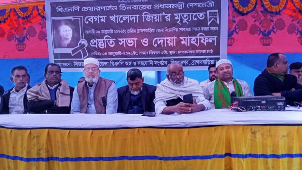 আবদুল্লাহ আল হৃদয়ঃ– বাংলাদেশের তিনবারের সফল সাবেক প্রধানমন্ত্রী, গণতন্ত্রের আপসহীন নেত্রী ও দেশনেত্রী বেগম খালেদা জিয়া (রহ.)-এর ইন্তেকালে ব্রাহ্মণবাড়িয়া জেলা বিএনপির উদ্যোগে আয়োজিত শোক সভা সফল করার লক্ষ্যে বিজয়নগর উপজেলা
