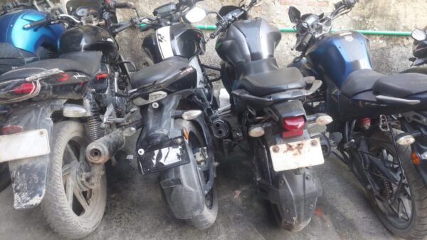 আবদুল্লাহ আল হৃদয়ঃ- ব্রাহ্মণবাড়িয়া জেলার নবীনগর থানা পুলিশের এক সফল অভিযানে উদ্ধার হয়েছে ০৬ (ছয়) টি চোরাই মোটরসাইকেল। শনিবার (১২ অক্টোবর ২০২৫) সকাল ৮টা ৩০ মিনিটে নবীনগর থানা পুলিশের